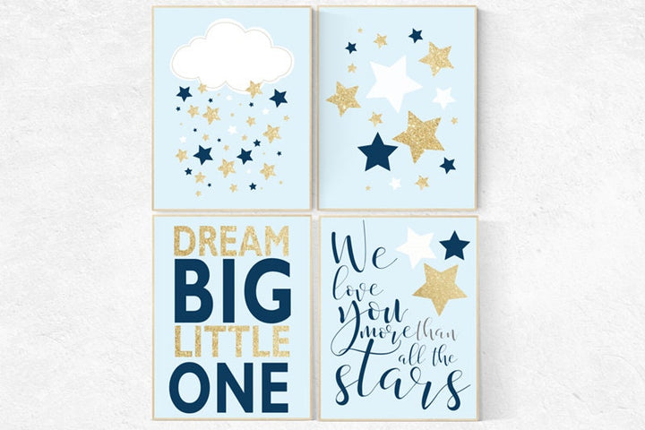 Nursery wall art boy, nursery decor boy cloud, nursery wall art, cloud and stars, star nursery decor, navy blue gold, navy nursery decor boy