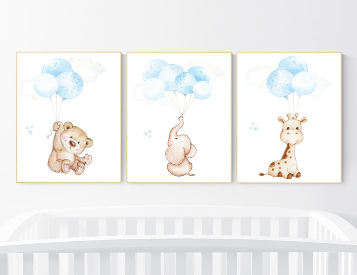 Nursery decor boy, animal prints for nursery, elephant nursery art, bear nursery decor, giraffe nursery print, balloon animal nursery decor