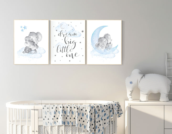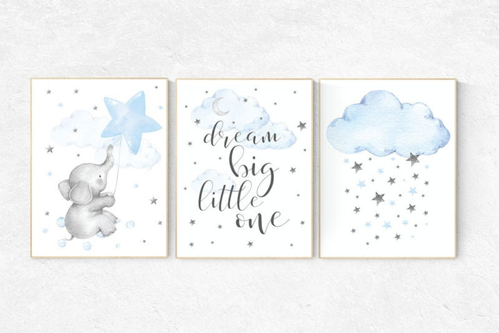 Nursery decor boy elephant, nursery wall art elephant, baby room decor boy, dream big little one, Elephant Nursery Art, Baby Boy Nursery Art