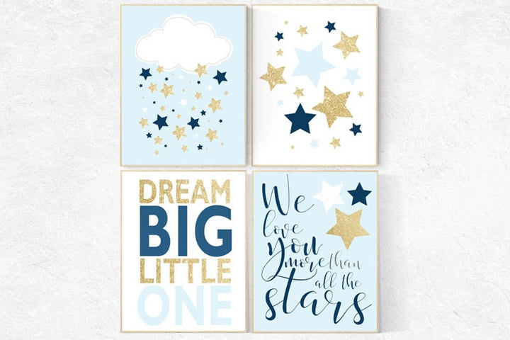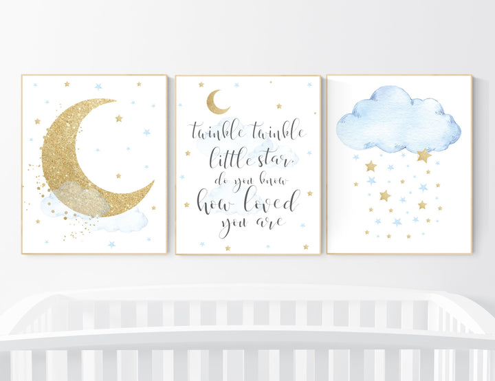 Nursery decor boy, blue and gold nursery, twinkle twinkle little star, blue nursery wall art, cloud and stars, baby nursery room decor