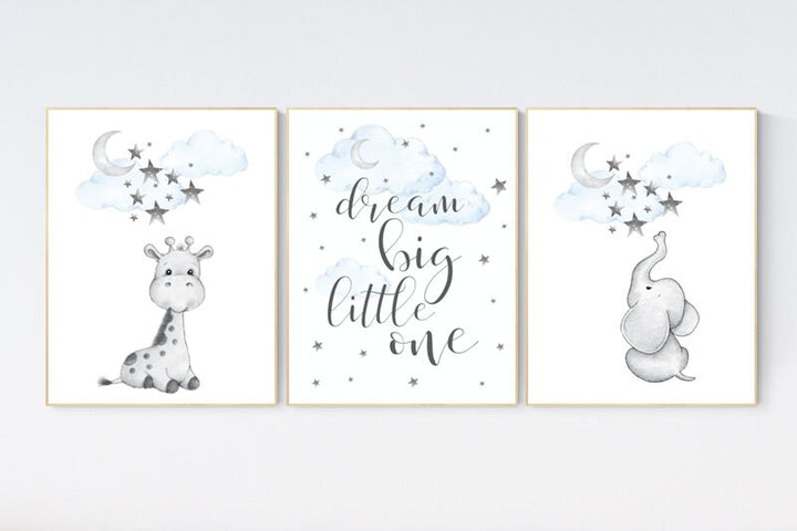 boy nursery decor elephant, nursery decor boy, blue nursery art, giraffe print nursery, elephant decor for nursery, dream big little one