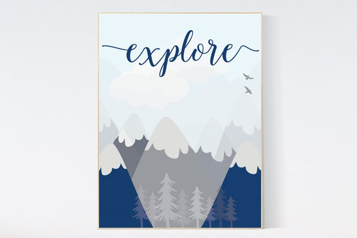 Explore, Nursery wall art woodland, Woodland nursery, baby room print, nursery prints neutral, baby room decor mountains, adventure nursery