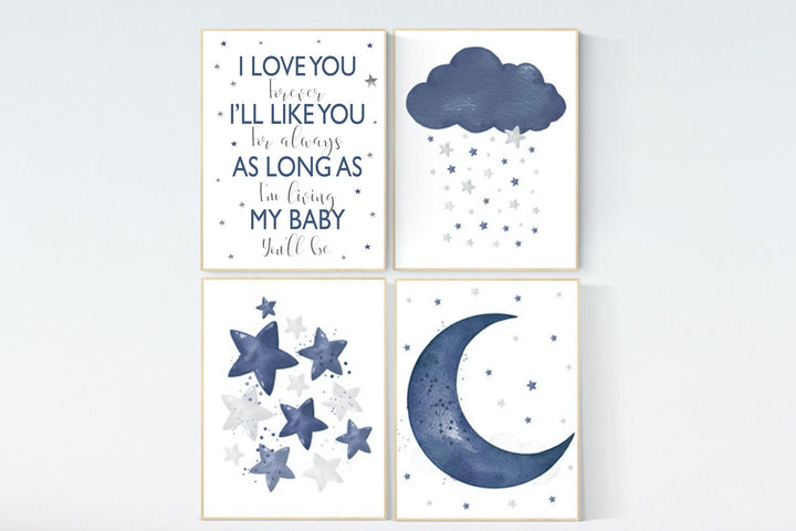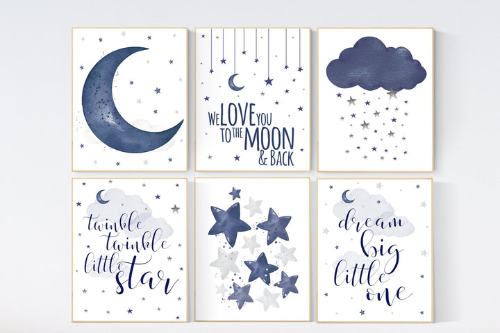 Nursery decor boy, navy nursery wall art boy, moon and stars, navy blue, navy nursery set, star nursery, baby room art, boy nursery prints