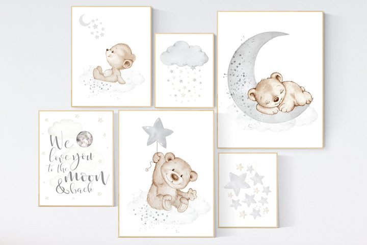 Nursery decor bear, nursery decor boy, bear nursery print, teddy bear decor, nursery wall art animals, boy nursery art, grey nursery, gray