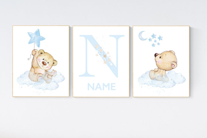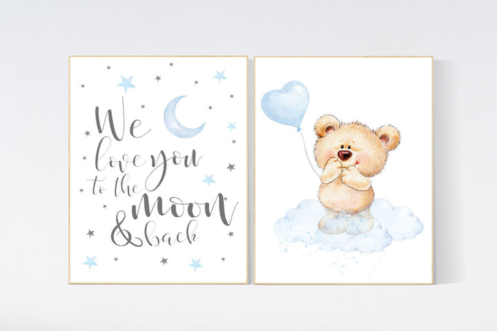 Nursery decor bear, nursery decor boy, bear nursery print, teddy bear decor, nursery wall art animals, boy nursery wall decor, blue nursery