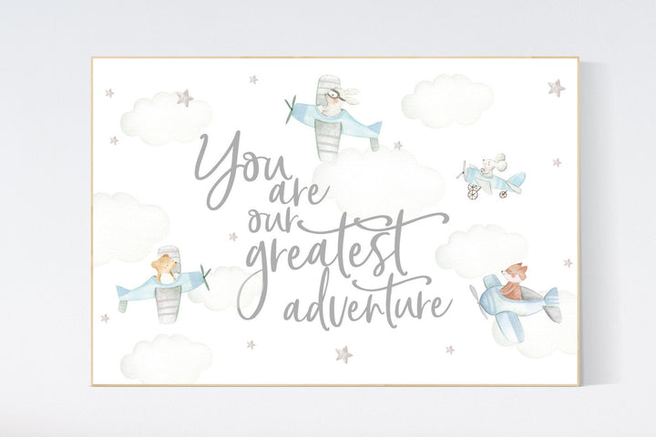 Plane nursery, Nursery decor boy nursery, you are our greatest adventure, animal prints, travel theme nursery, planes nursery wall art, boy