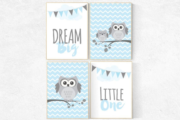 Owl nursery decor, Baby boy nursery, moon print, dream big little one, owl nursery wall art, blue gray nursery, boys room wall art, baby boy