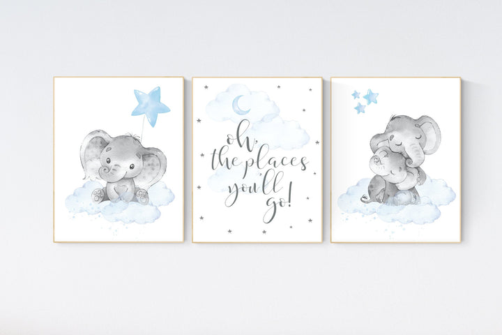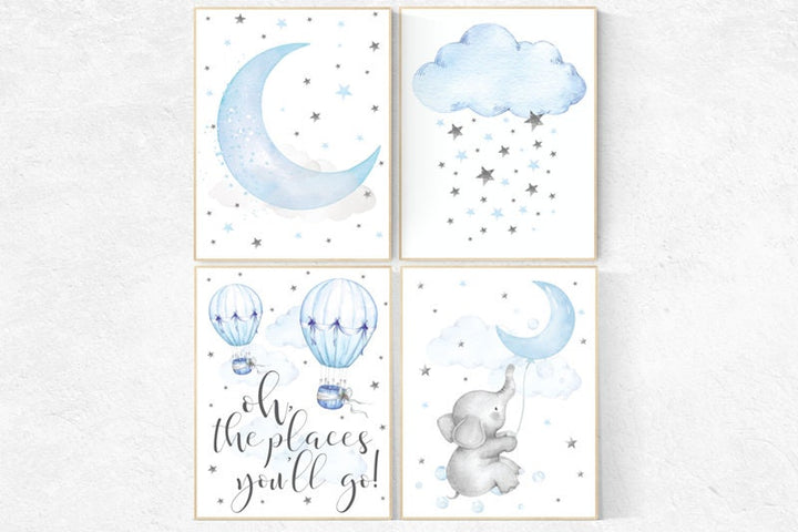 Nursery decor boy elephant, Blue Nursery, Nursery decor boy hot air balloon, oh the places you'll go, cloud and star nursery, nursery art