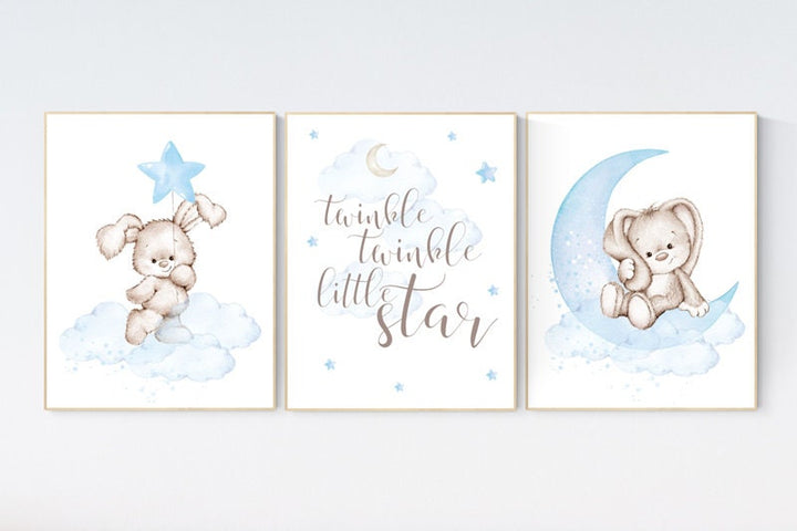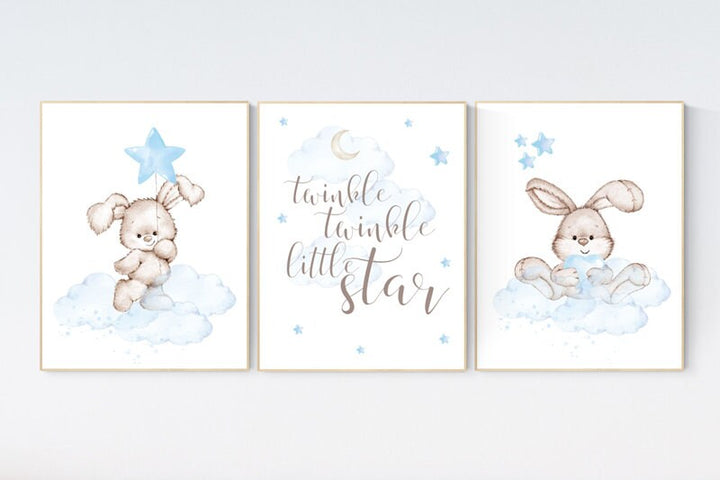 Nursery decor boy bunny, bunny print set, twinkle twinkle little star, rabbit nursery decor, boy nursery, Bunny print, boy nursery art