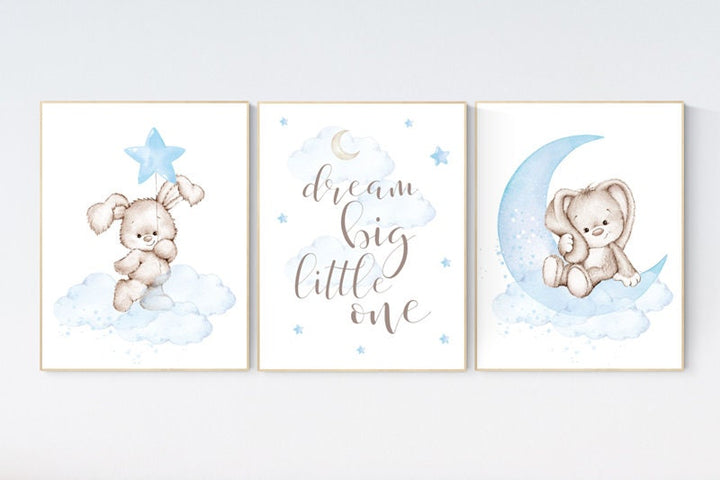Nursery decor boy, nursery decor bunny, dream big little one, rabbit nursery decor, Bunny print, boy nursery wall art, bunny print nursery