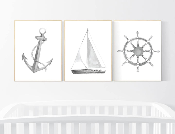 Nursery decor nautical, gender neutral, nursery decor boy nautical, sea theme nursery decor, nautical wall decor, gray nursery, grey