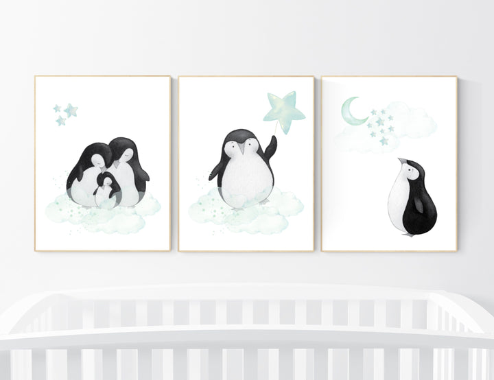 Mint nursery decor, nursery decor penguin, nursery decor neutral, nursery decor boy mint, cloud and star nursery, penguin nursery