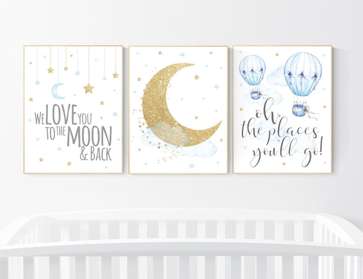 We love you to the moon and back, Nursery decor boy bunny, bunny print set, rabbit nursery decor, boy nursery, Bunny print, boy nursery art