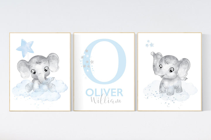 Nursery decor boy elephant, nursery wall art elephant, baby room decor boy, cloud and stars, Elephant Nursery Art, Baby Boy Nursery Art