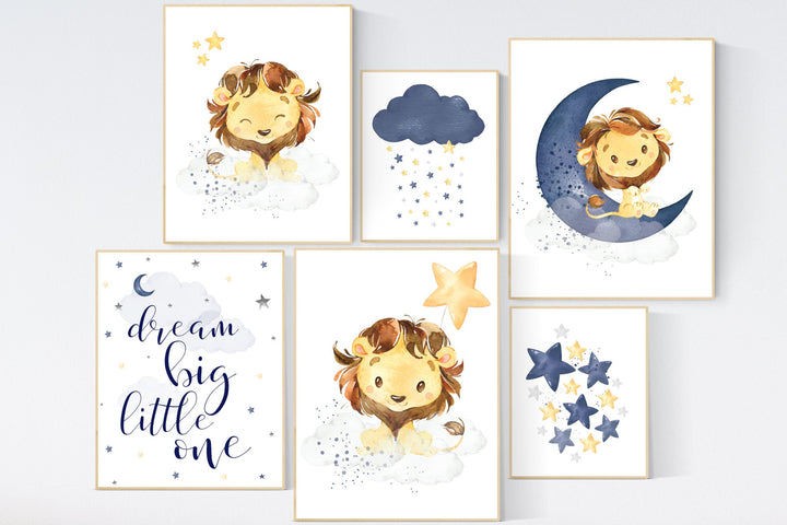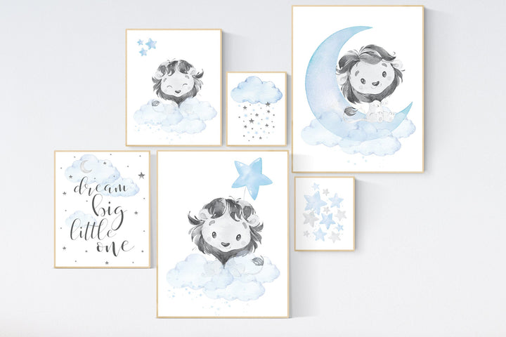 Nursery wall art lion, Nursery decor boy lion, boy nursery decor, moon and stars, baby blue nursery, boy nursery, dream big little one