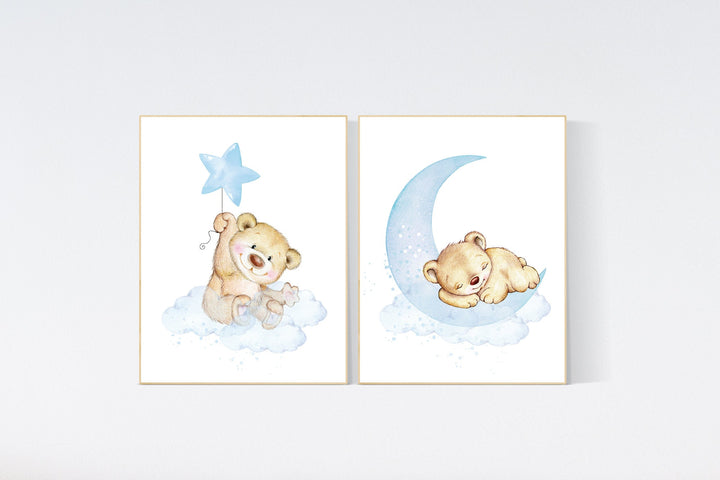 Nursery wall art bear, nursery decor animals, nursery decor woodland, nursery prints blue, teddy bear, baby blue, baby bear nursery