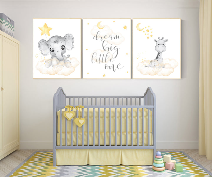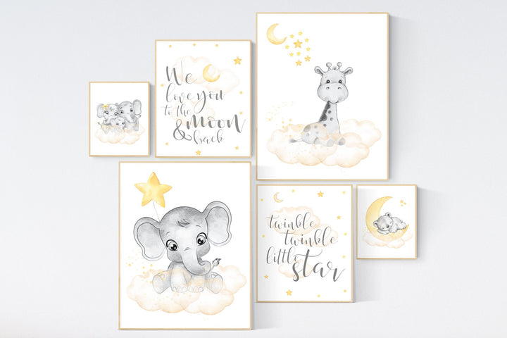Nursery decor neutral, Yellow nursery, nursery wall art elephant, giraffe nursery, gender neutral, yellow and grey nursery, baby room art