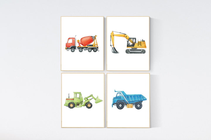 Boy Room Wall Art, Construction Vehicle Nursery Prints, Construction Wall Art, Transportation Print, Truck Wall Art, Nursery Truck Prints