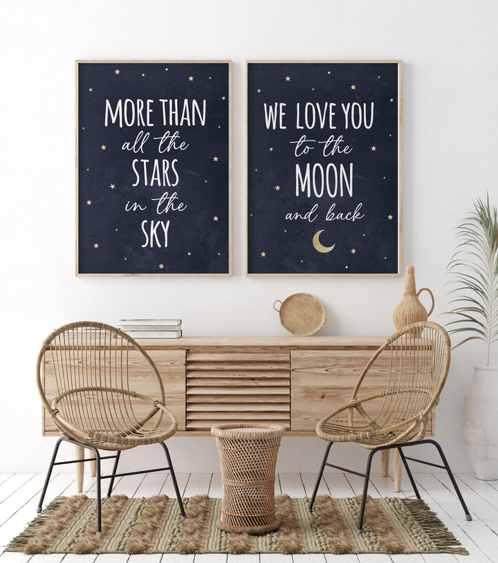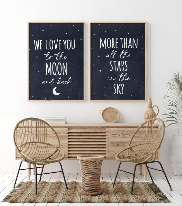 Nursery decor boy navy blue, Nursery wall art boy, navy nursery decor, moon and stars, we love you to the moon and back, nursery prints boy