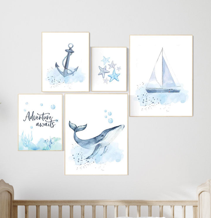 Nursery decor boy nautical, whale print nursery, nautical wall decor nursery, sea nursery decor, nautical prints set, sea themed nursery
