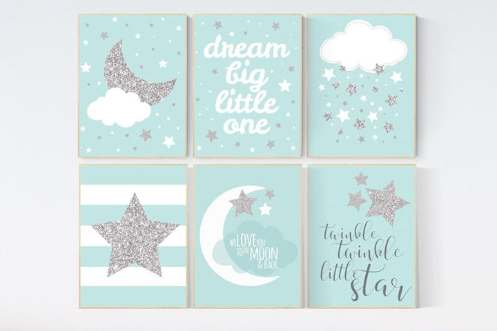 Mint nursery decor, gender neutral nursery decor, Dream big little one, twinkle, mint nursery wall art, baby room, Nursery decor neutral