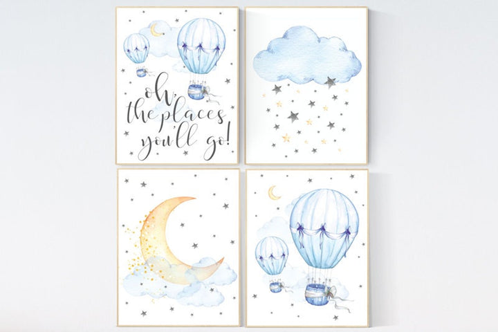 Nursery decor hot air balloons, cloud nursery decor, Oh the places you'll go, Nursery decor neutral, moon and stars nursery gender neutral