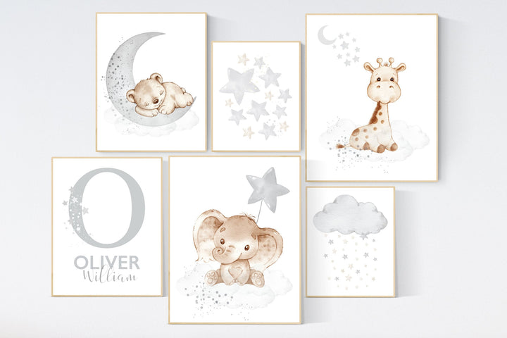 Animal nursery, gender neutral, Nursery wall art animals, gray nursery, neutral, lion, bunny, bear, elephant, giraffe, koala, animal prints