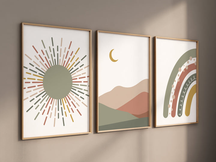 Boho Nursery, rainbow nursery, earth colors, Nursery decor gender neutral, moon nursery, Abstract Art, sun nursery, Mid Century Print