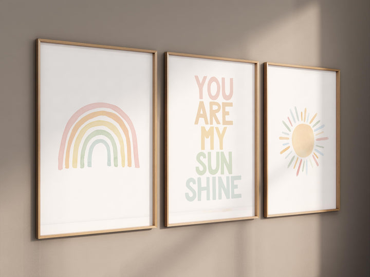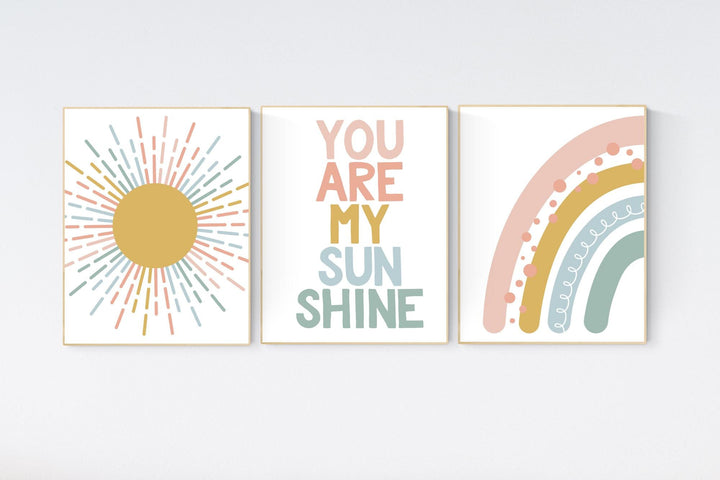 Neutral rainbow wall art, You Are My Sunshine Print, Neutral Nursery Decor, Rainbow Nursery Decor, Kids Room Decor, gender neutral
