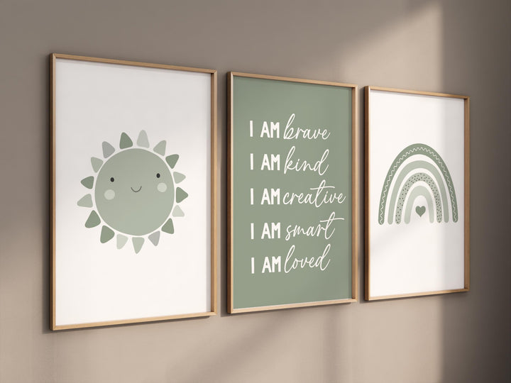 Nursery decor Boho, rainbow nursery, sage nursery, boys room decor, sage green nursery, I am brave, heart print, gender neutral nursery