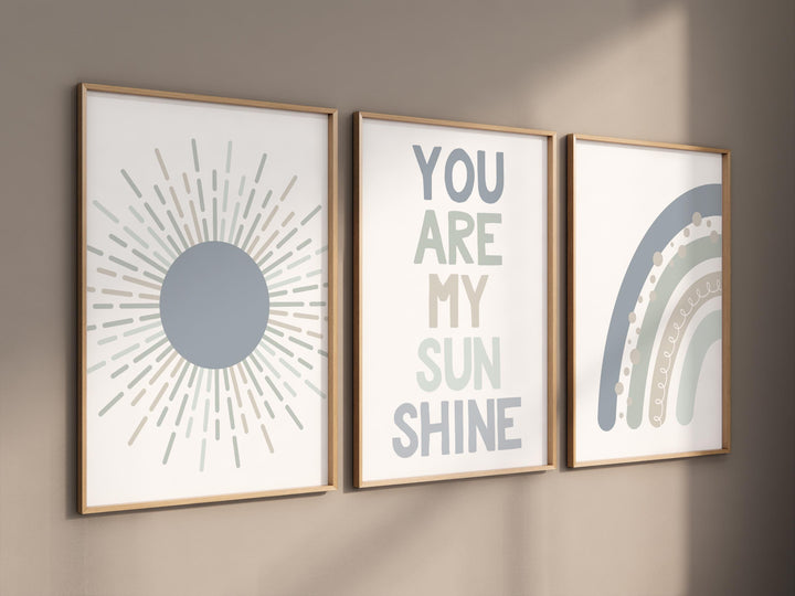 Nursery decor boy Boho, rainbow nursery, blue green nursery, boys room decor, moon nursery, boho prints, boys nursery, you are my sunshine