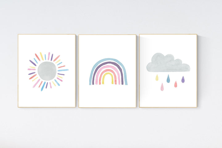 Nursery decor rainbow, neutral Rainbow Wall Art, rainbow Print Set, Cloud Rainbow Sun, Rainbow Wall Art, gender neutral, Watercolor Rainbow