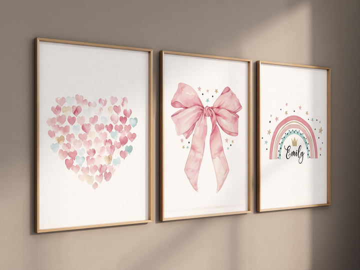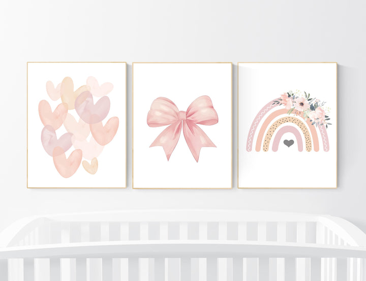 Rainbow nursery, heart print, bow print, Girl bedroom art, girls room decor, blush nursery, baby girl wall art, blush nursery