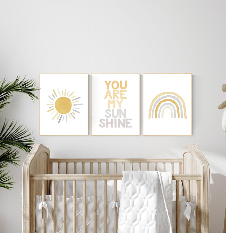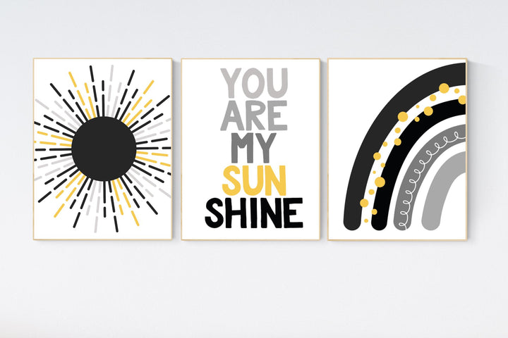 Nursery prints rainbow, mustard yellow and gray, nursery wall decor, rainbow nursery, you are my sunshine, nursery decor neutral, sunshine