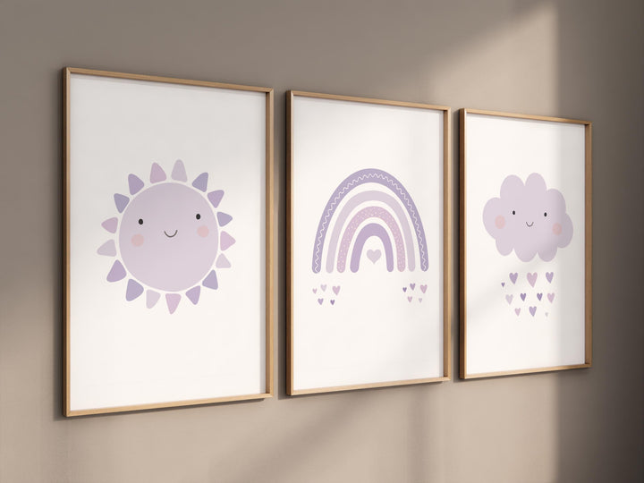 Nursery prints rainbow, Purple baby room decor, Purple sun nursery art, Nursery decor girl, sunshine nursery wall art, lavender nursery