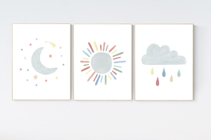 Nursery prints moon, Nursery decor gender neutral, nursery wall art, sun print, cloud print, nursery wall art neutral nursery print