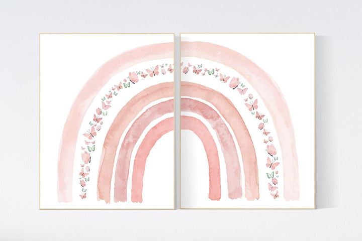 Nursery decor rainbow, Boho Rainbow Set, rainbow nursery, blush nursery, Nursery Decor boho, blush pink, flower nursery, set of 2